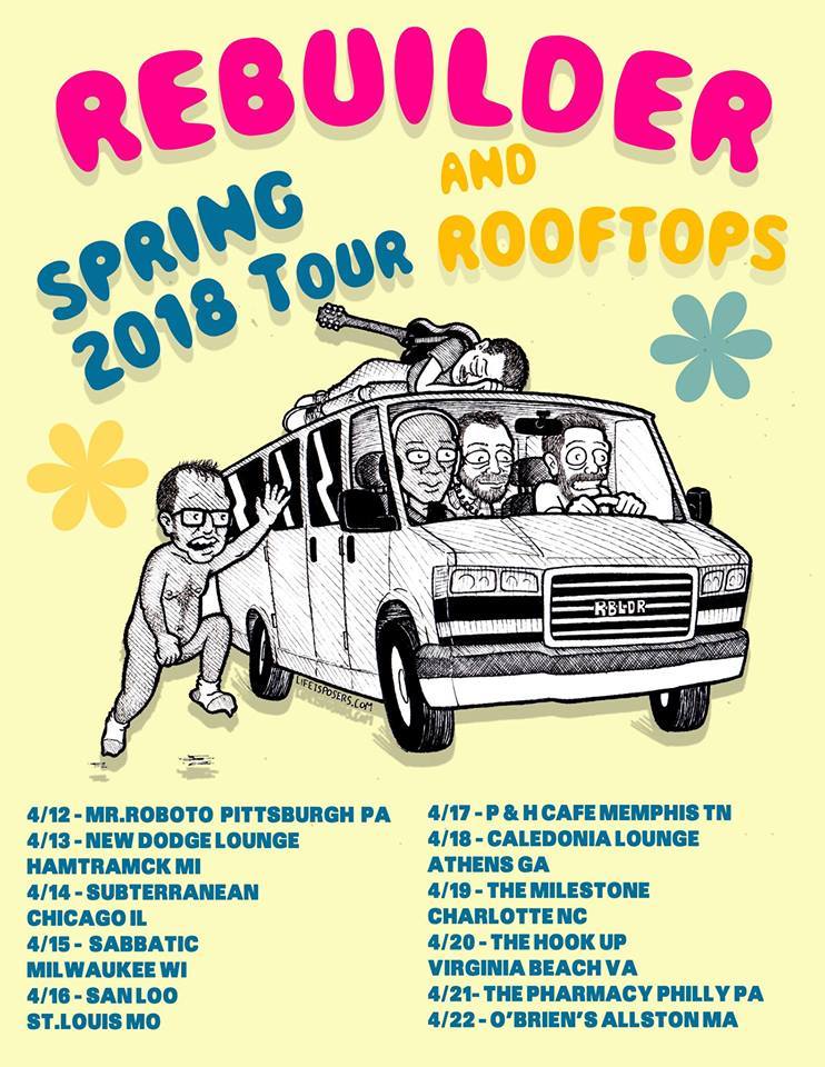 Boston’s Rebuilder are heading out on tour with Rooftops, the tour kicks off in Pittsburgh on April 12th and runs through to April 22nd. The band’s latest release, Sounds From The Massachusetts Turnpike, is now available via Panic State Records, the EP is a record that widens and solidifies Rebuilders sonic footprint in the landscape of rock and roll, re-thinking the traditional three chord punk song and developing their own unique style.