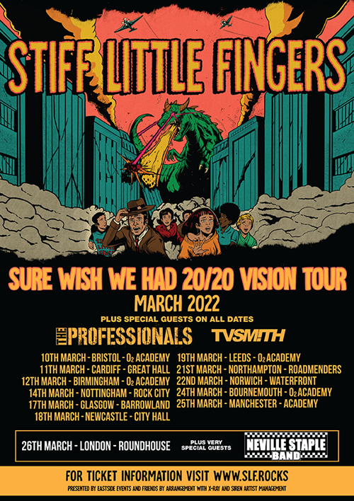 Stiff Little Fingers have announced that they have had to postpone their UK tour dates due to the ongoing pandemic, with regard to the tour they have moved as many of the shows as they could back a year, and as was the case with the initial move ALL tickets for the original shows will remain valid and The Professionals, TV Smith, & Neville Staple will still appear alongside Stiff Little Fingers on the tour. The band released this statement “Obviously, compared to the bad news a lot of people have received over the last year or so this is a drop in the ocean, and our thoughts are with those who have lost loved ones or suffered in some other way as a result of this terrible virus.”