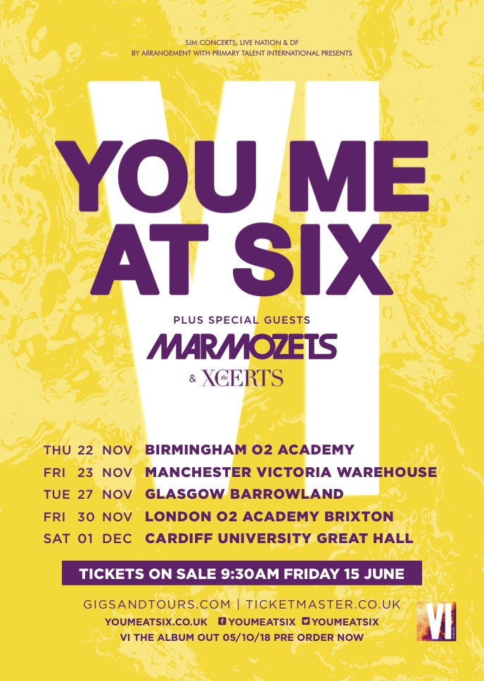 Having entirely sold out their forthcoming headline tour, You Me At Six have announced three more special UK shows in Manchester, Glasgow and London in November to celebrate the tenth anniversary of their debut album, Take Off Your Colours. The announcement comes off the back of the anticipated forthcoming new album, VI, that is due out on October 5th. Pre sale for the additional tour dates commences on July 25th and tickets can be ordered here