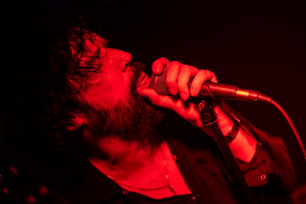 Speaking of chaos, first up tonight is The Dirt. They open with manifesto is spat out over a discordant backing before launching into their upcoming single Ignorance Is Bliss, hypnotic bass lines with a motorik drum beat that is overlaid with an intense northern manifesto. Poetry is often touted as the new rock ‘n roll, this is not strictly the case, for The Dirt poetry is rock ‘n roll, unsettling at times, always intense and always from the heart. As ever with The Peer Hat they scrape rock ‘n roll’s underbelly and showcase the unique talents that exist far far away from the mainstream. By the end of their set the majority of basement venue is cloaked in a fog of dry ice and the venue is cast back to the days of the sweaty alternative clubs of the late 80’s I (vaguely) remember so fondly.