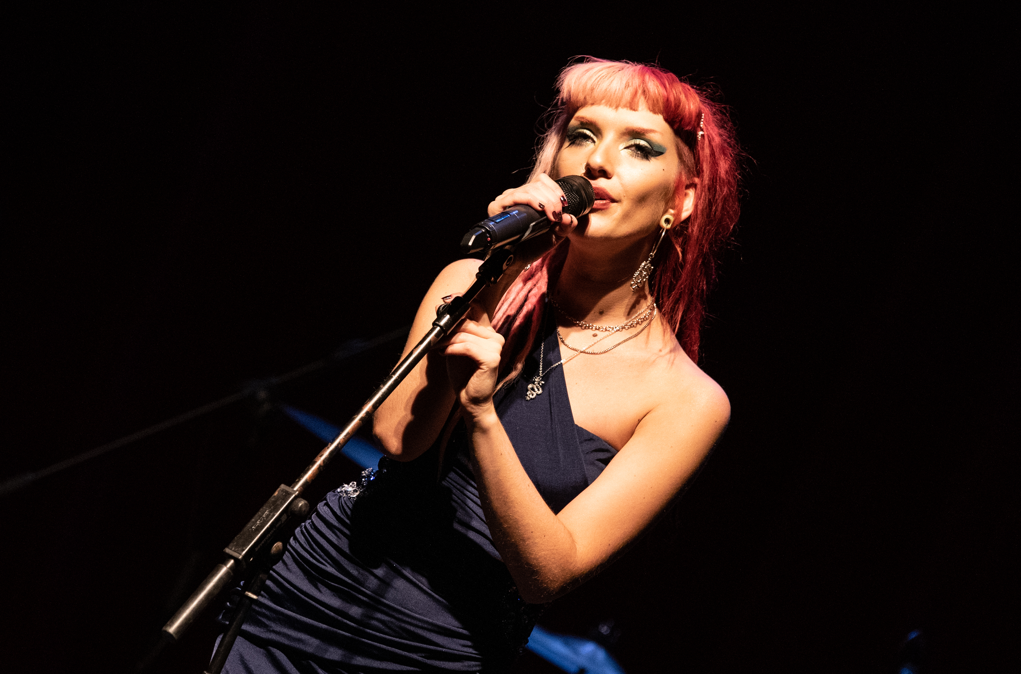 Lauren Tate is no stranger to The Punk Site, we’ve covered her band Hands Off Gretel from before their first album was released, through the sweaty pub shows through to the new album “I Want The World” and playing the main stage at the Rebellion Festival, but with her new critically acclaimed solo album “Songs For Sad Girls” she is given the chance to showcase a very different side of her songwriting. Tonight the difference in the sets is exemplified by Lauren’s appearance, she is clad in a shimmering evening dress matching the glamour of the surroundings, tonight she is accompanied by Hands Off Gretel guitarist Seán Bon, although it must the said that he hasn’t even come close to matching her in the sartorial elegance stakes.